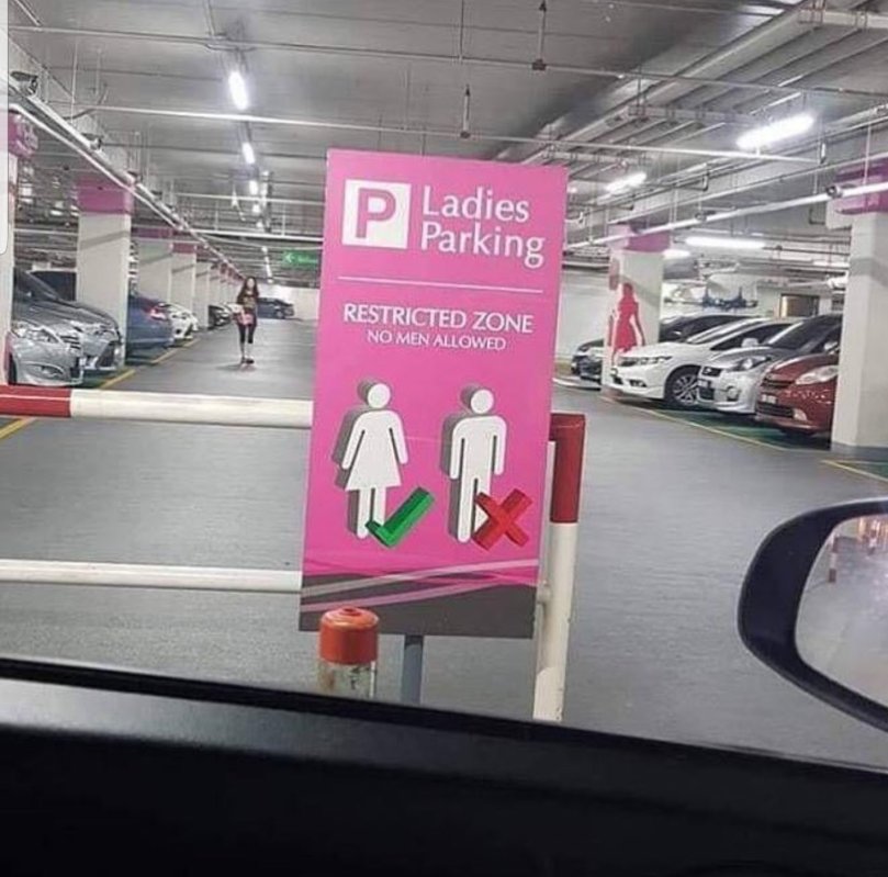 See that picture? Women Only Parking. If that were reversed and it said Men Only Parking, there would be a riot in the streets. We have the Girl Scouts and now we have just the “Scouts.” Girls are allowed there now, but boys still can’t join the Girl Scouts.