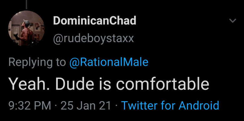 And to round it out, a woman decided to join in on the fun as well. I happen to like her reply: