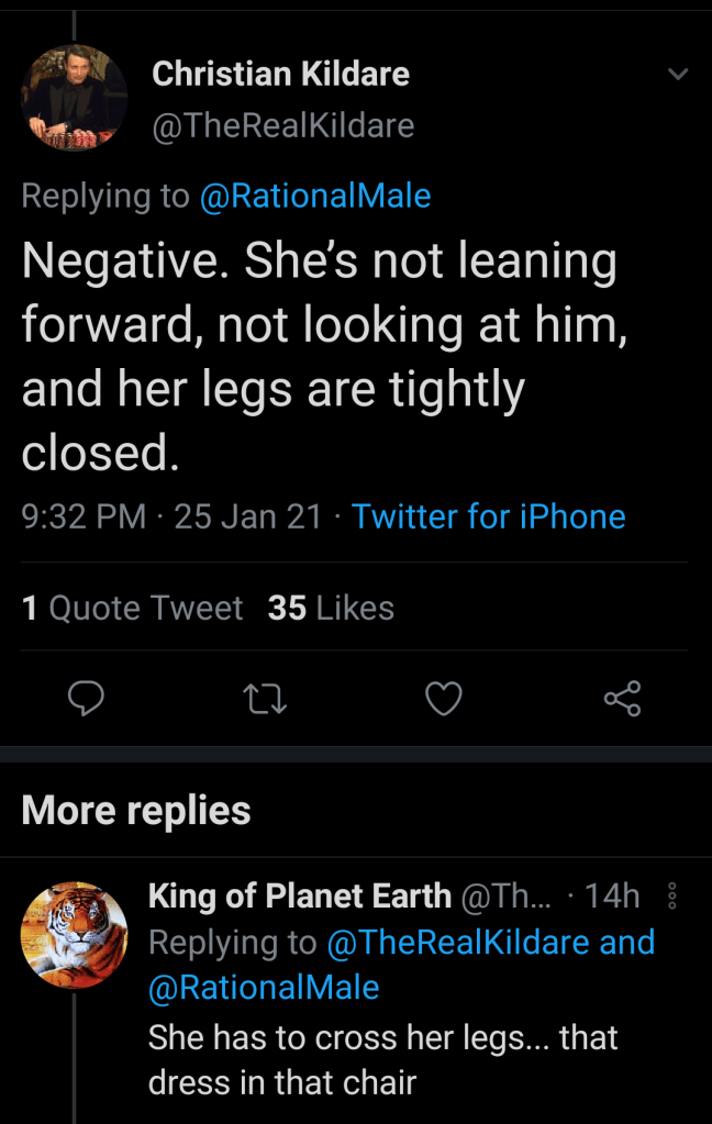 And when it comes to her legs being crossed: