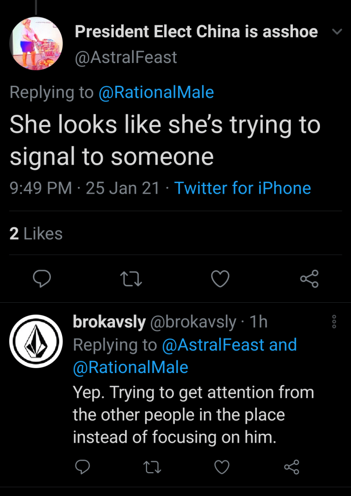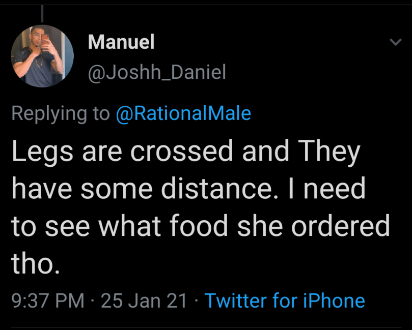 And the list goes on and on and on… Lots of “Yes they are banging,” and a lot of “No, they aren’t.” Lot of why the person replying thinks they are banging or not. On Twitter, everybody is a fucking expert when it comes to body language and motive.