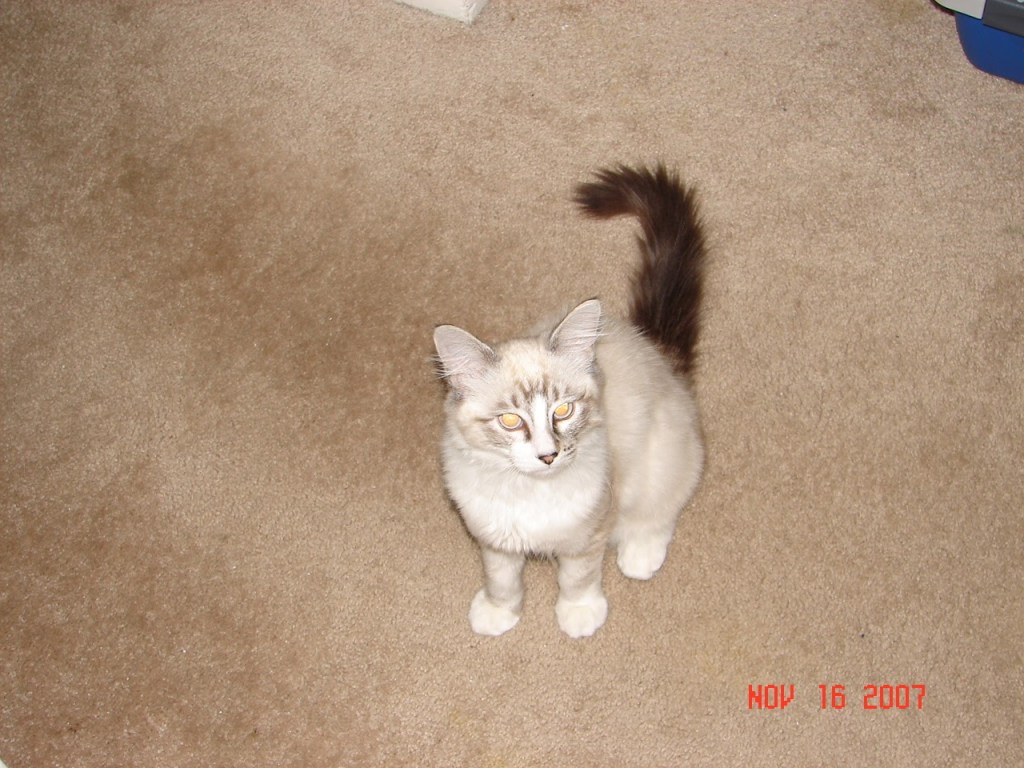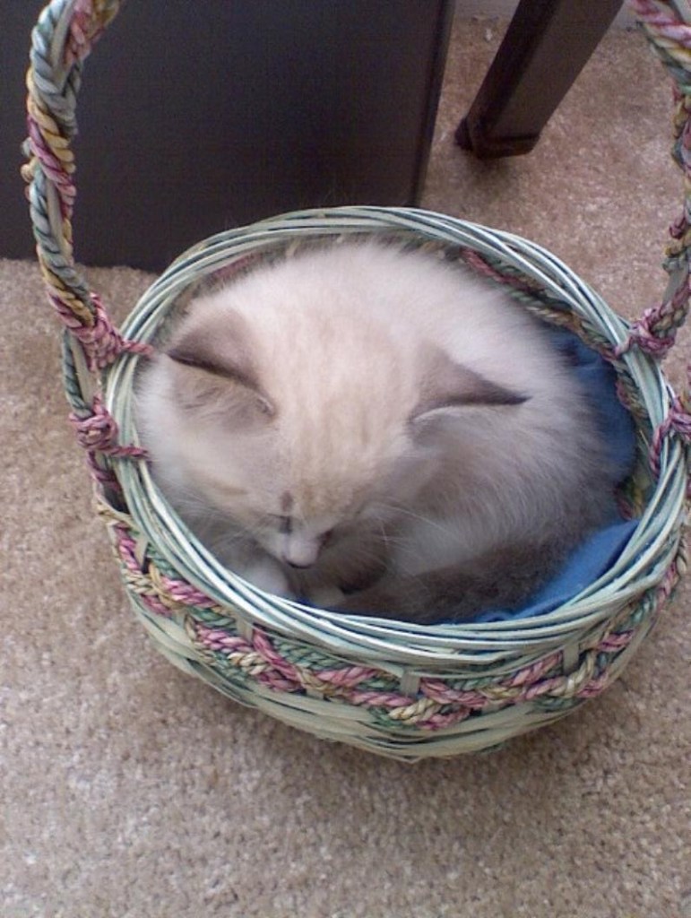 I remember back in September of 2007. My girlfriend at the time, who later went on to become my wife, and then later to become my ex-wife, brought you home. You were just a little ball of fuzz. You were pretty quiet, unless you were eating, and then you wouldn’t shut up. You were so tiny back then, you could fit inside a little easter egg basket.